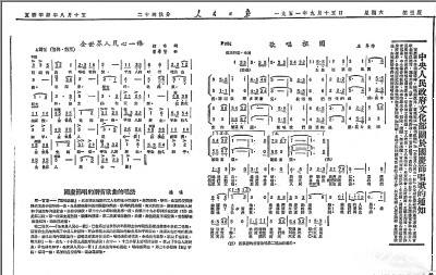 1951年9月15日的《人民日报》向全国读者推荐了《歌唱祖国》(图片为资料图片)