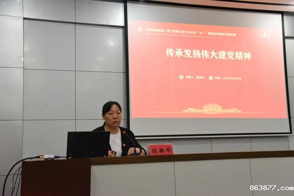 读书班开班第一堂课由陈新华主讲。陈新华围绕学习贯彻习近平总书记“七一”重要讲话精神,以《传承发扬伟大建党精神》为题,给全体党员干部上了一堂精彩的党课。陈新华谈到,要把伟大的建党精神融于血脉中,让爱党爱国情怀在心中流淌生生不息;要发扬伟大的建党精神,增进政治定力,增强“四个意识”、做到“两个维护”;要以伟大的建党精神洗涤心灵,净化思想;要以伟大的建党精神激励工作热情,在伟大的中国特色社会主义建设进程中发挥力量。