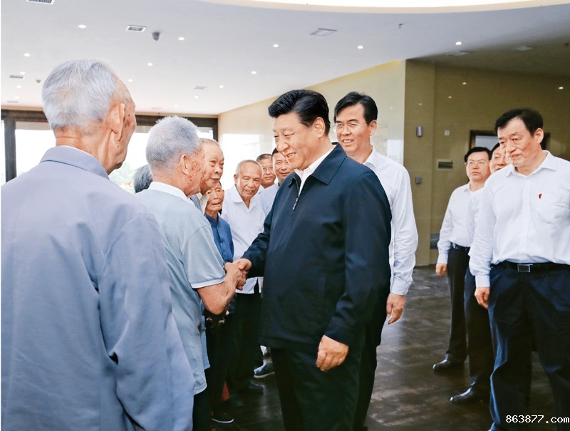 2019年5月20日至22日,中共中央总书记、国家主席、中央军委主席习近平在江西考察,主持召开推动中部地区崛起工作座谈会并发表重要讲话。这是习近平在赣州市于都县中央红军长征出发纪念馆会见于都县的红军后代、革命烈士家属代表。 新华社记者 鞠鹏/摄