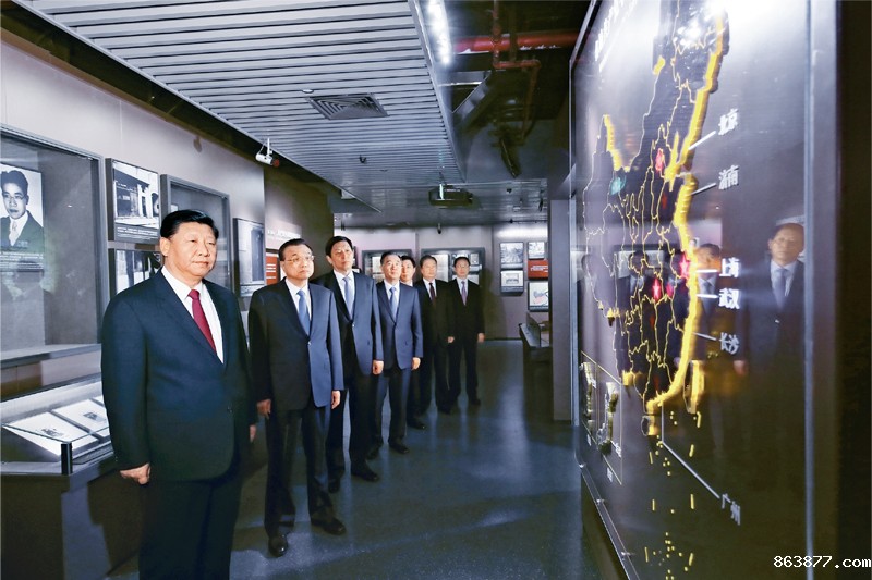 2017年10月31日,中共中央总书记、国家主席、中央军委主席习近平带领中共中央政治局常委李克强、栗战书、汪洋、王沪宁、赵乐际、韩正,瞻仰上海中共一大会址和浙江嘉兴南湖红船。这是31日上午,习近平等在上海中共一大会址纪念馆参观。 新华社记者 兰红光/摄